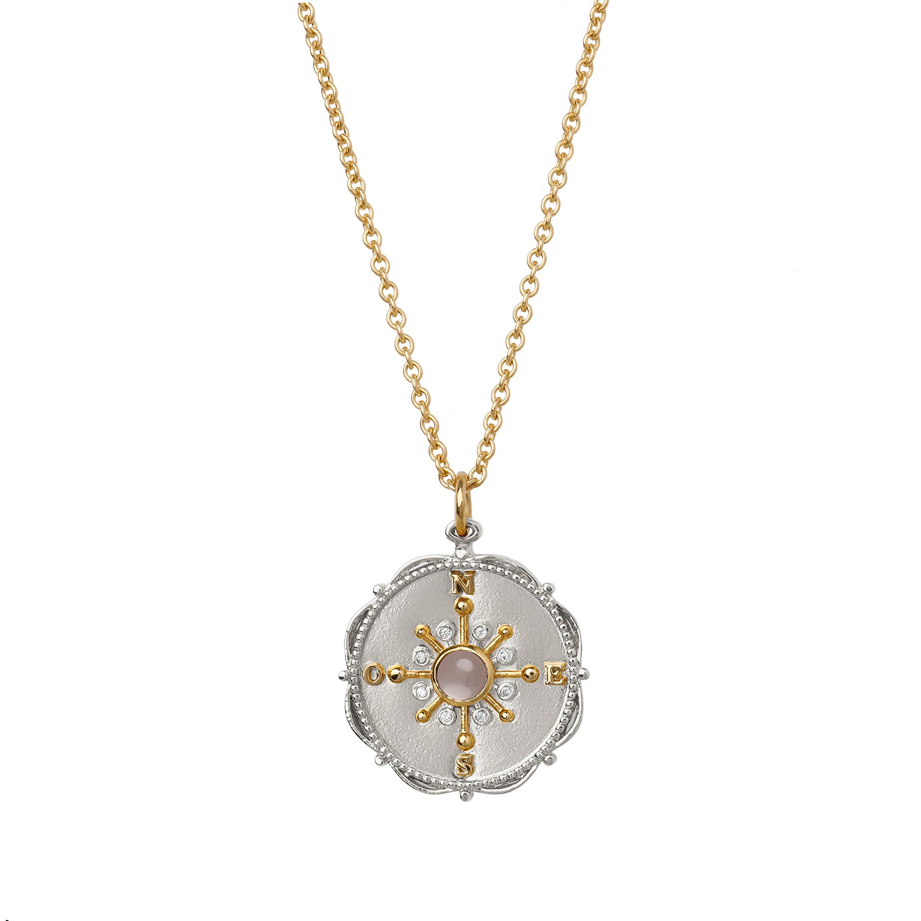 Collar Brújula Cuarzo rosa Doble Tono