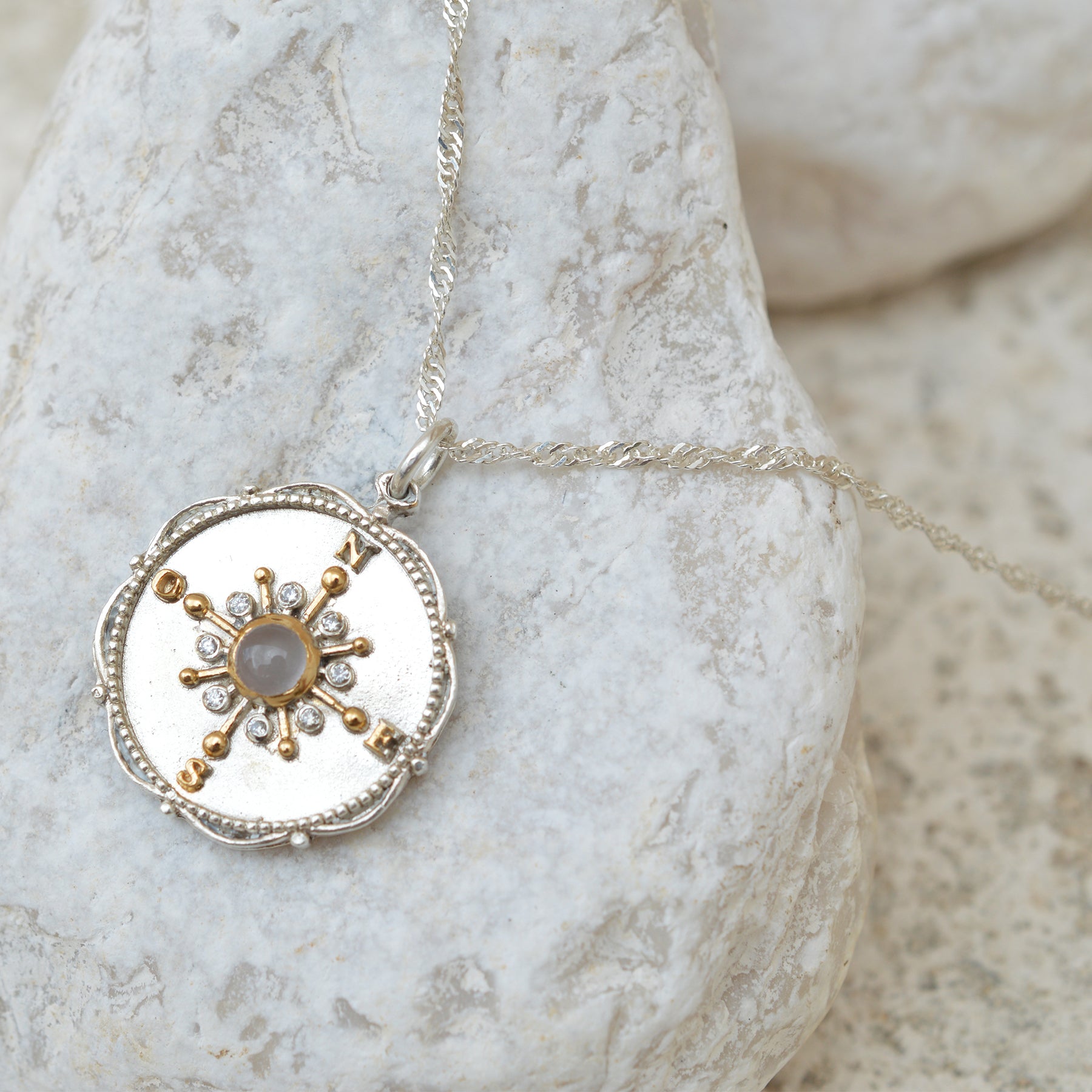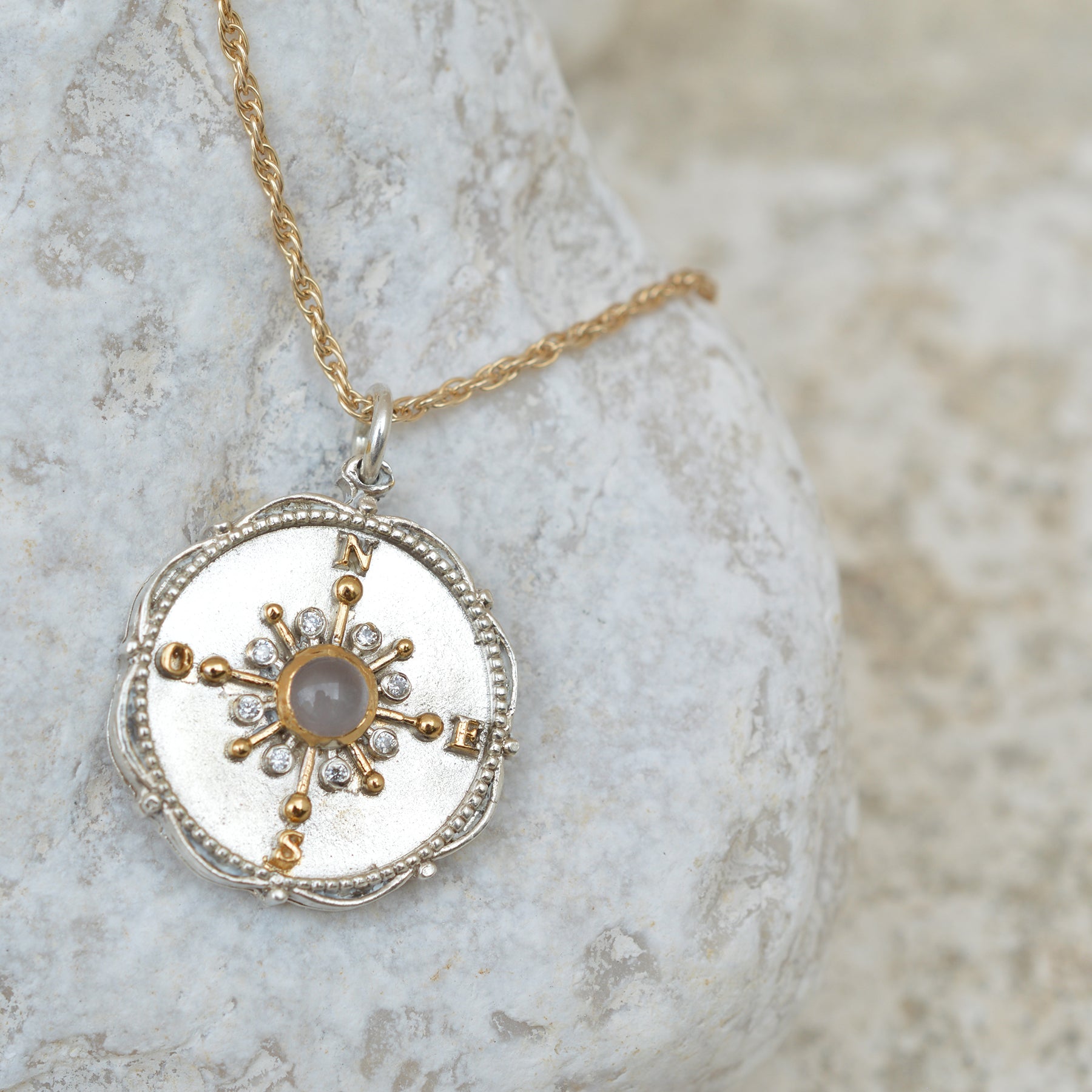 Inspirada en la rosa de los vientos para crear un amuleto que te invita a confiar en tu intuición.