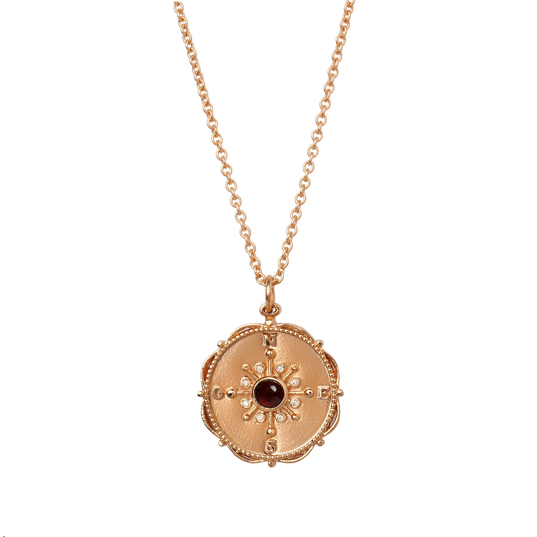 Collar Brújula Granate Dorada