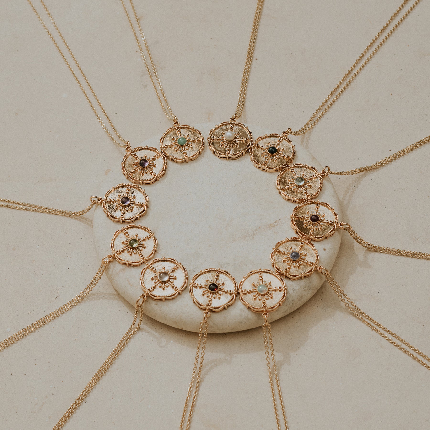 Piedras cuidadosamente seleccionadas aportan color, textura y vitalidad a cada joya, creando piezas únicas que capturan esencia, movimiento y elegancia natural.