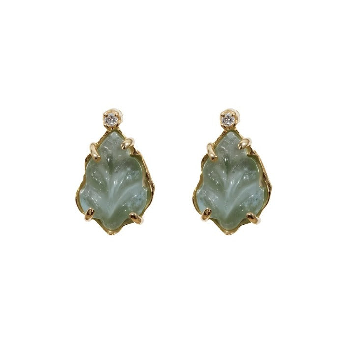 Aretes hojas Aguamarinas oro 14k