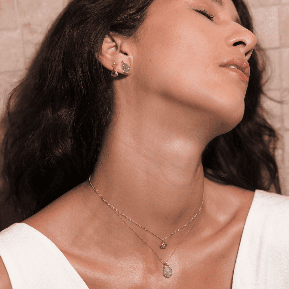 Piedras cuidadosamente seleccionadas aportan color, textura y vitalidad a cada joya, creando piezas únicas que capturan esencia, movimiento y elegancia natural.